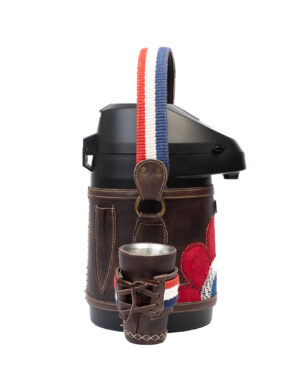 ₲ 650.000Termo Inox 2.5 L especial para tereré o mate, forrado en cuero beige. Incluye detalles de ñandutí artesanal y trencita. Diseño resistente y elegante y hecho a mano en Paraguay. Ideal para uso diario y regalos premium.