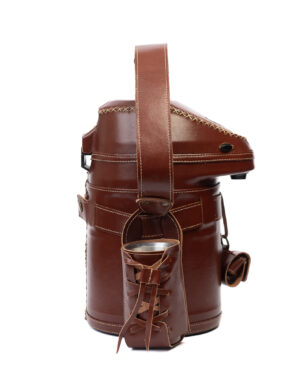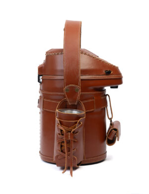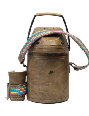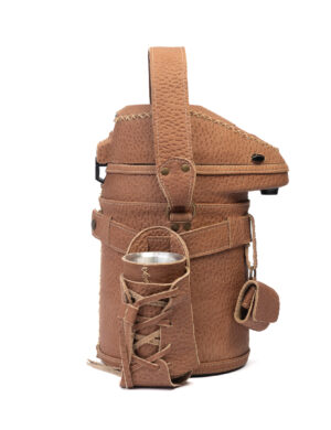 Termo Inos 2.5 L Tereré o Mate forrado en cuero beige con trencita y ñandutí