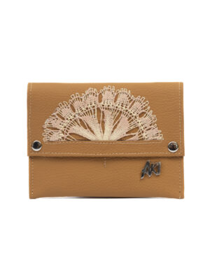 Porta pasaporte de cuero beige con ñandutí artesanal, elegante, resistente y práctico. Ideal para viajar, protege tu pasaporte y combina estilo con funcionalidad.