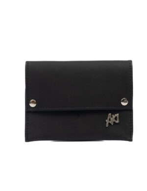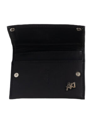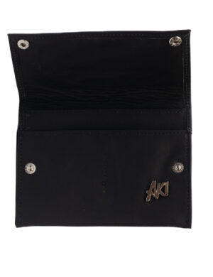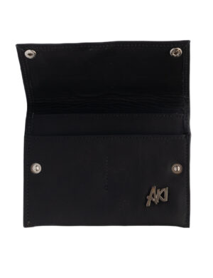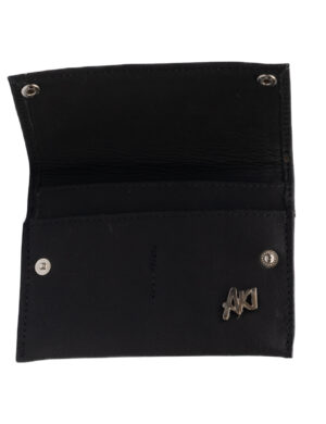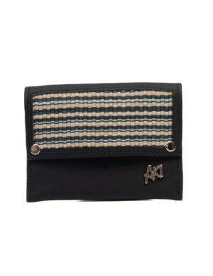 Porta pasaporte de cuero negro con detalle artesanal de faja, elegante, resistente y funcional. Ideal para viajar, protege tu pasaporte con estilo.