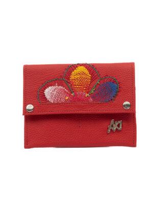 Porta pasaporte de cuero rojo con detalle artesanal de ñandutí, elegante, resistente y funcional. Ideal para viajar, protege tu pasaporte con estilo.