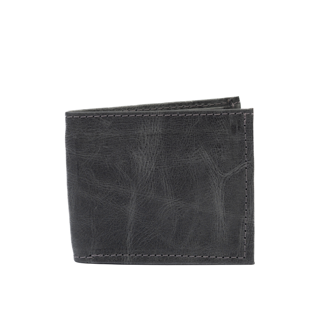 Billetera para caballero de cuero gris, resistente, elegante y funcional, ideal para el uso diario.