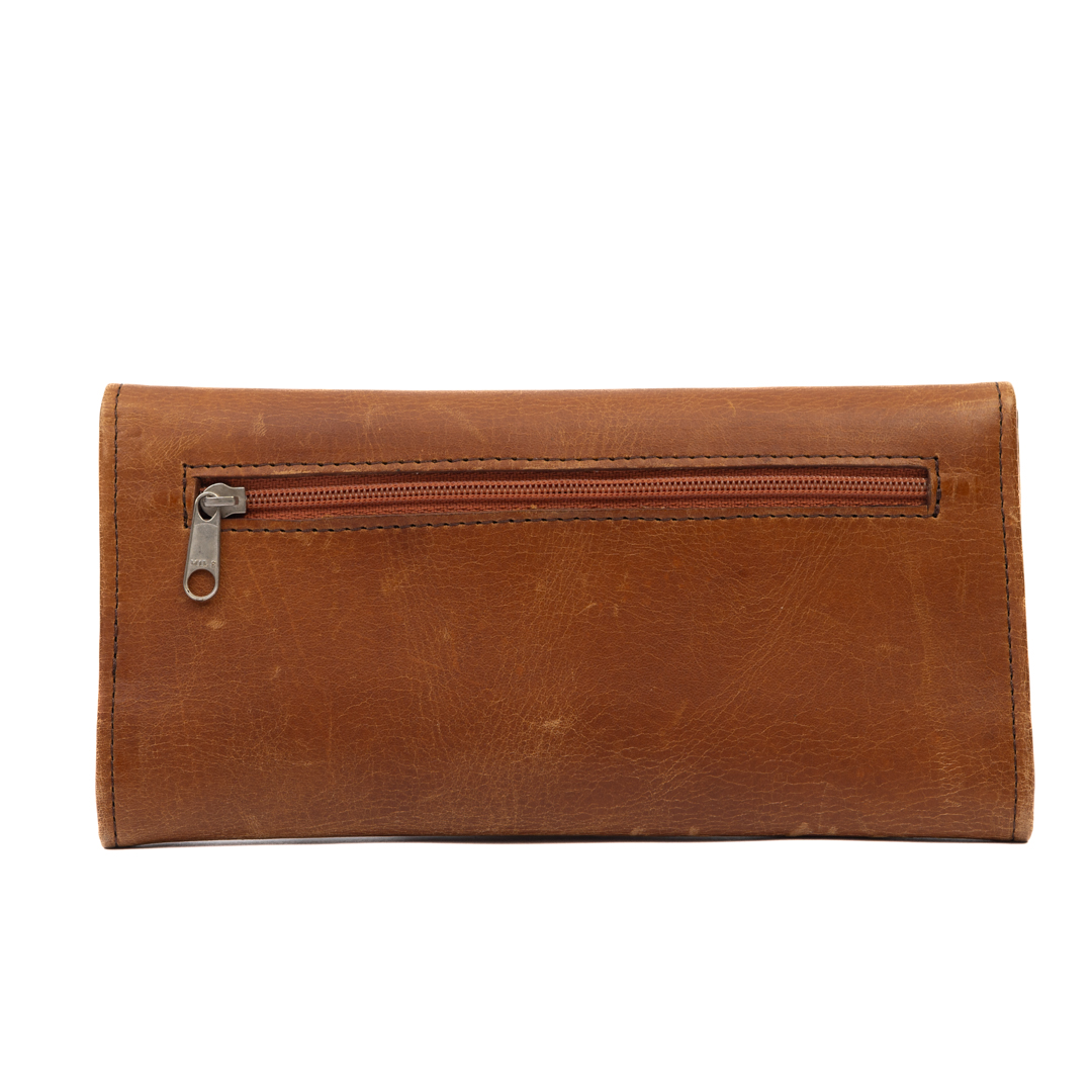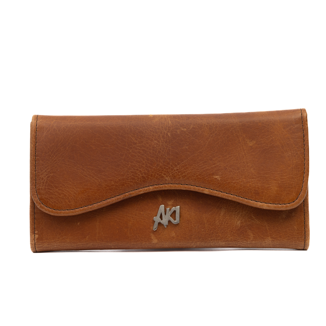 Billetera para dama de cuero marrón suela con compartimiento simple, funcional, elegante y resistente.