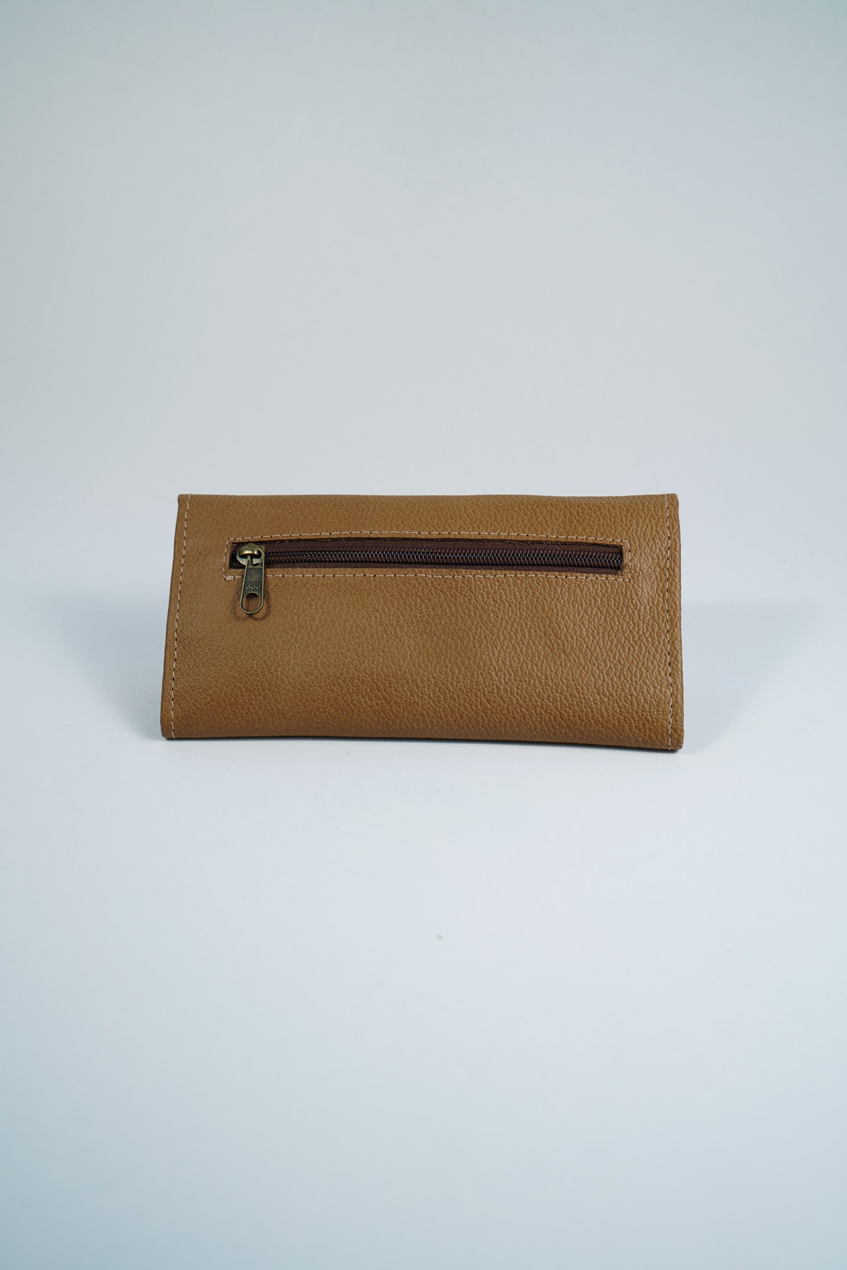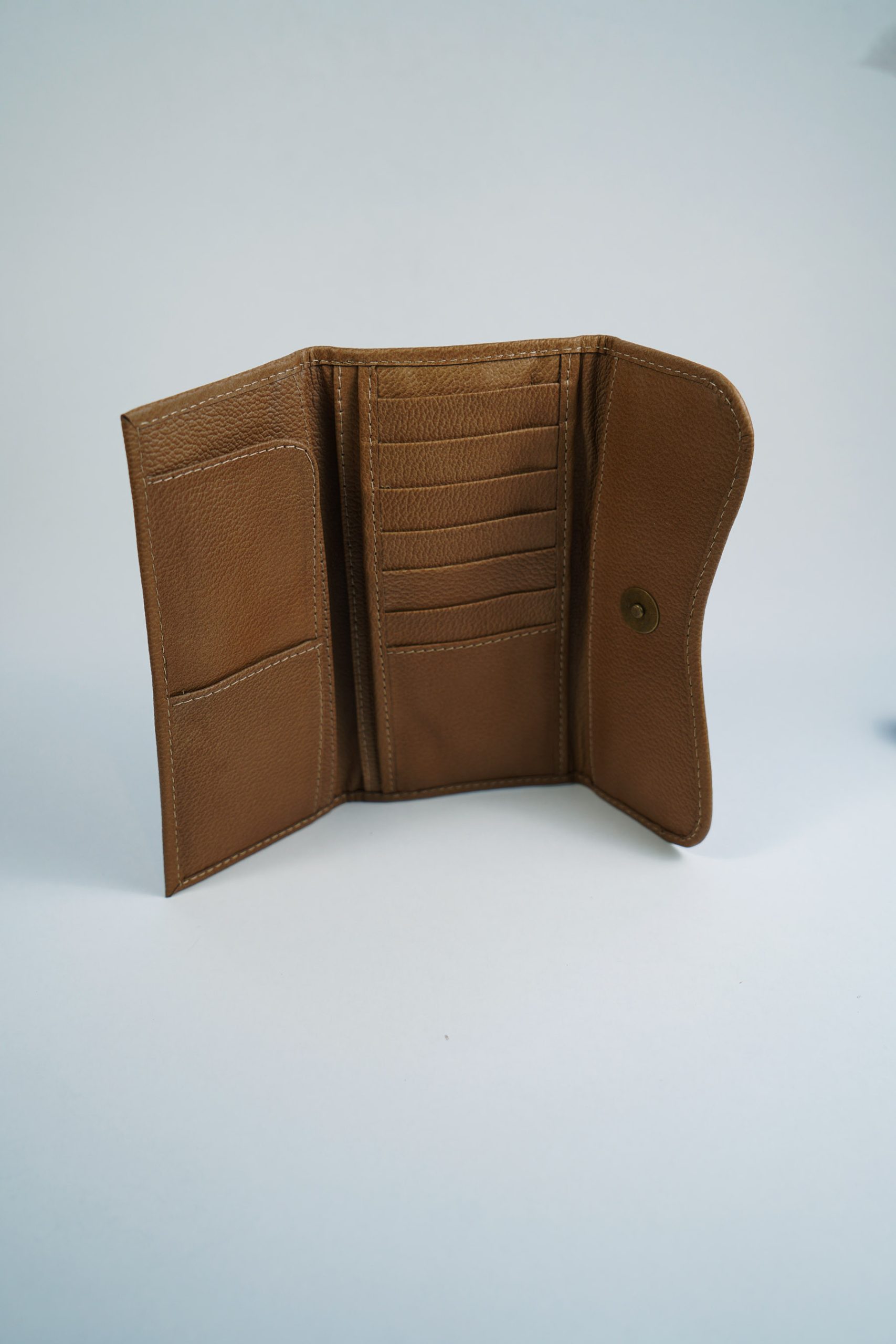 Billetera simple en cuero genuino color marron japones, sin detalles artesanales.