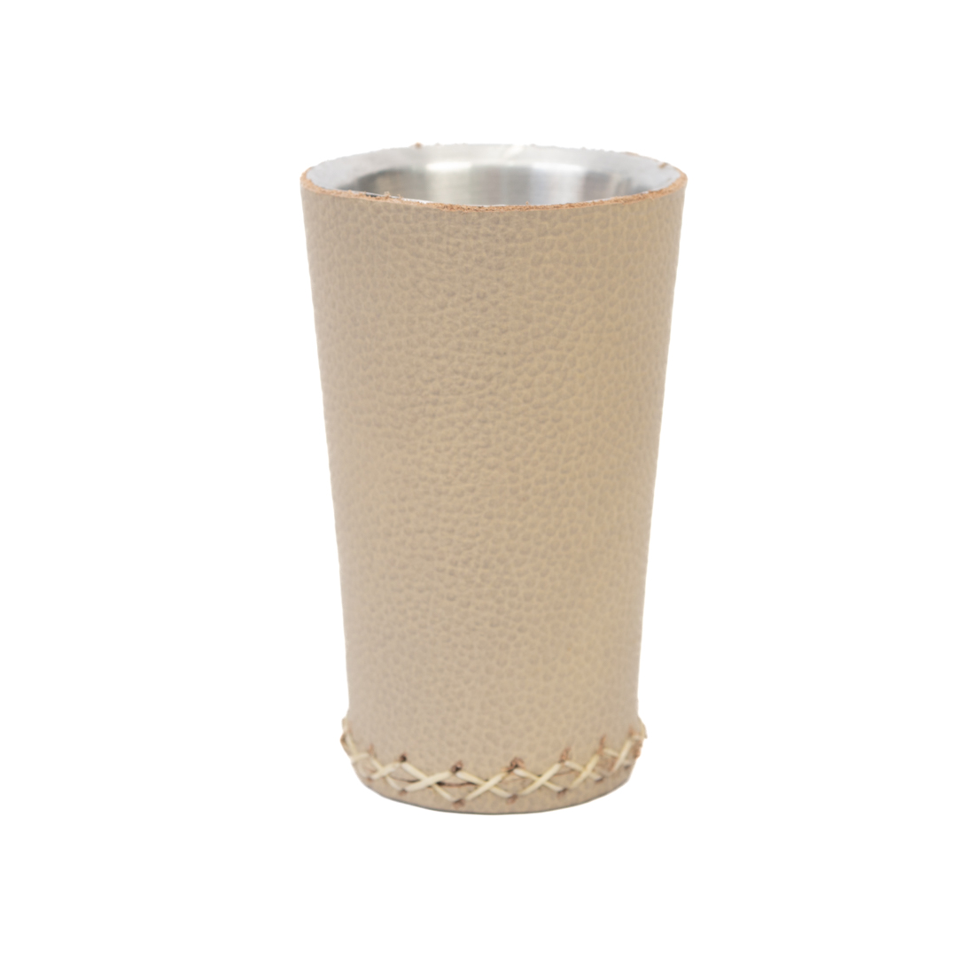 Guampa de Tereré de aluminio y madera forrada en cuero beige claro