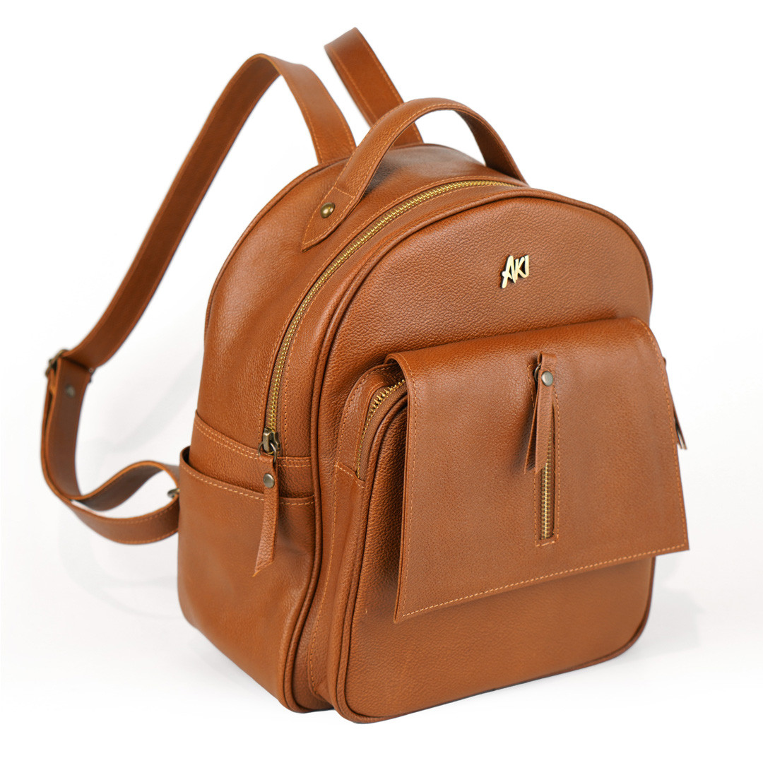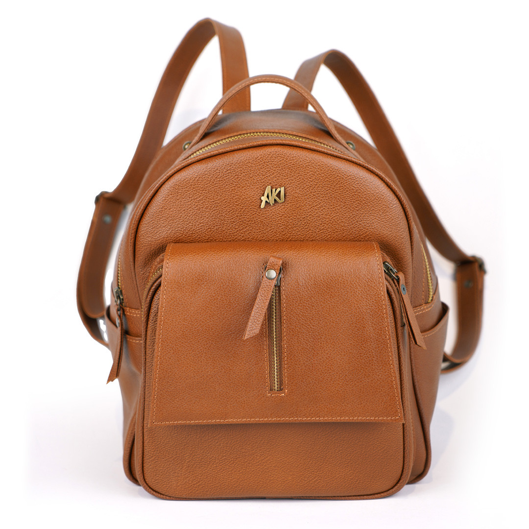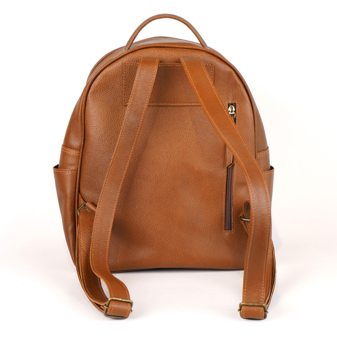Mochila modelo mapiz en cuero genuino color marron suela graneado, sin detalles artesanales. Practico para que te acompañe en el dia a dia.