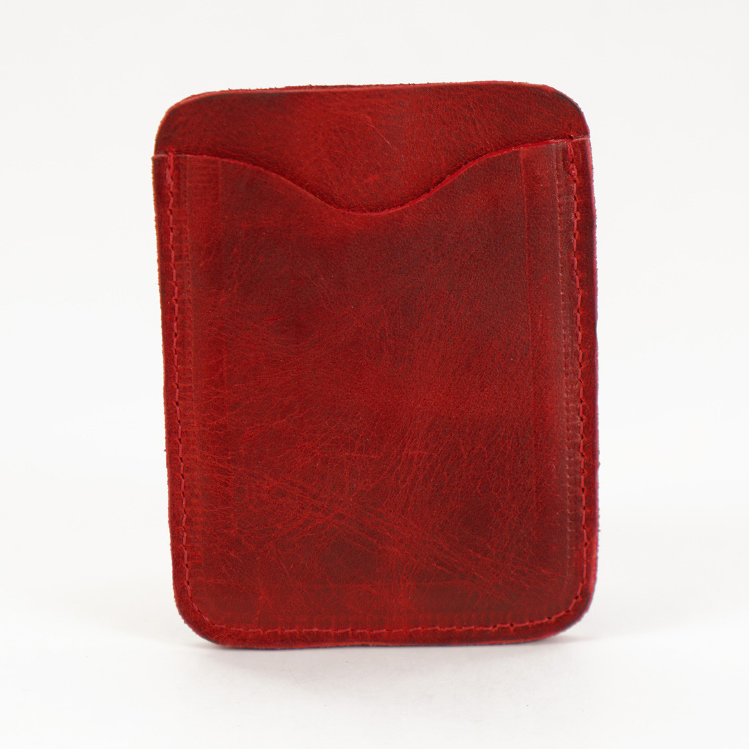 Tarjetero en cuero genuino color rojo gastado con detalle de ñanduti. Especial para mantener tus tarjetas y documentos de uso diario en froma ordenada.