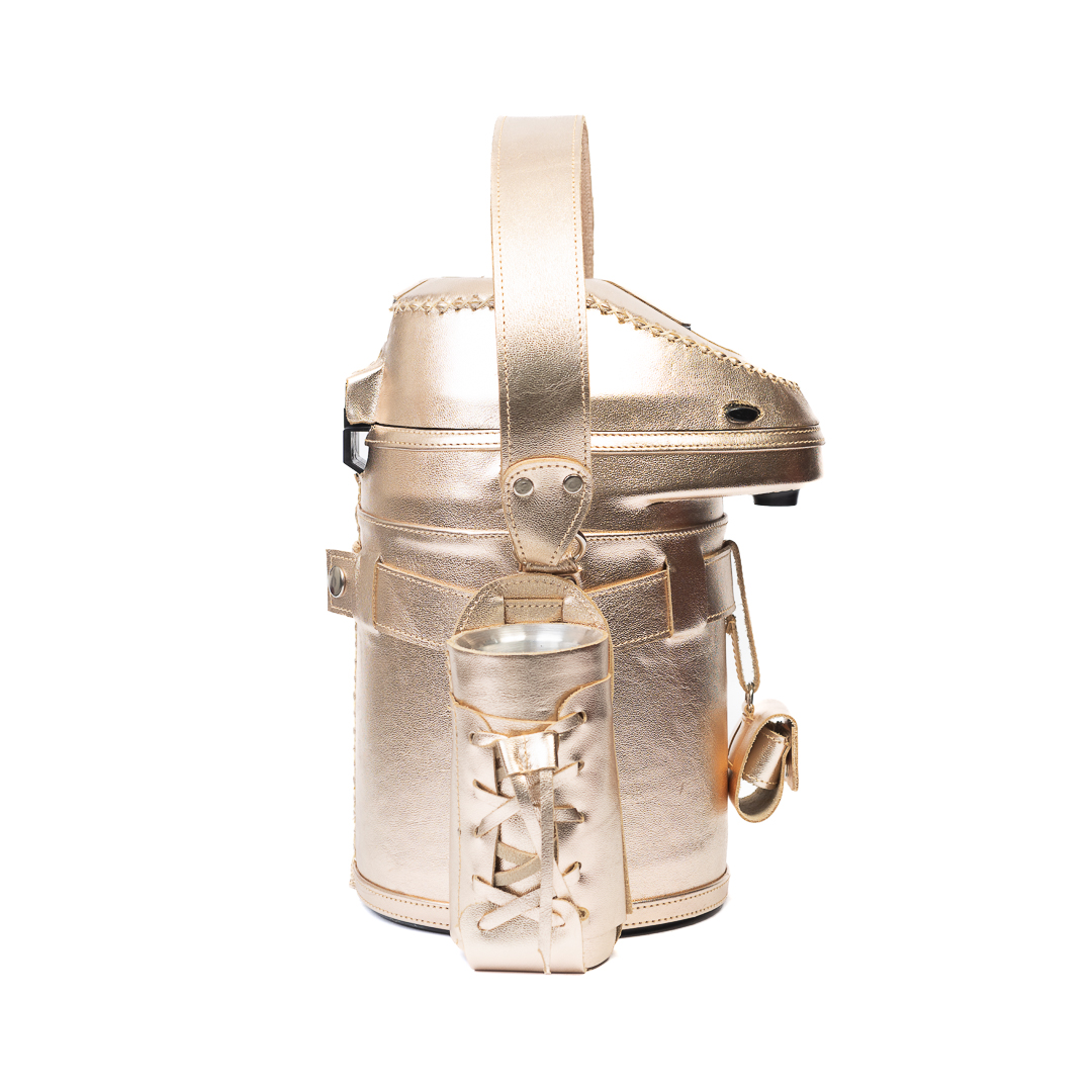 Termo Inox 2.5 L Tereré o Mate forrado completo en cuero dorado con bolsillos y porta accesorios